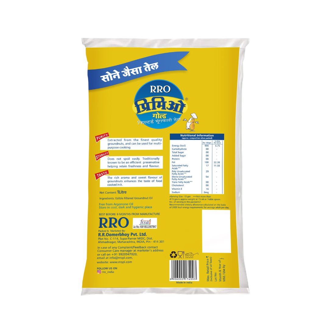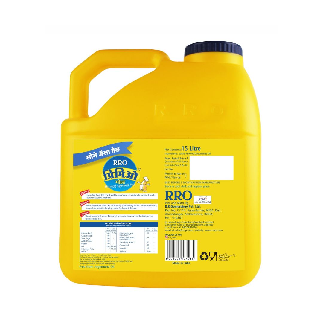 Offering the same benefits as Primio, this oil is completely natural. The sweet flavour of groundnuts enhances the taste of food cooked in it.