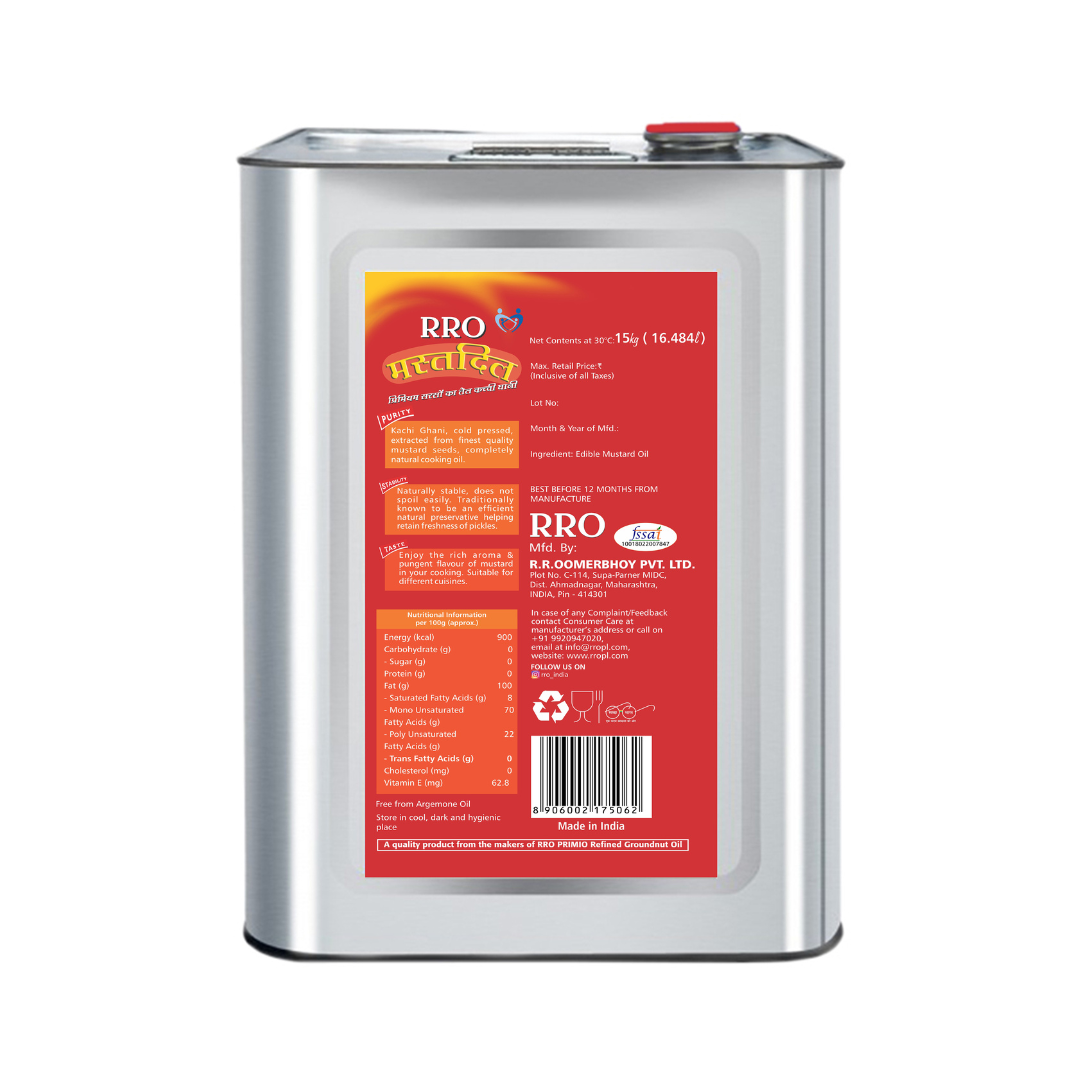 Obtained from the first cold pressing of the finest quality mustard seeds, RRO Mastdil is filtered to retain its naturally sharp flavor and pungent aroma. It has a high content of Monounsaturated Fatty Acids (MUFA 70%), along with Omegas 3 and 6, which help in slowing down the aging process of cells. A natural preservative, it makes an ideal choice for pickles, sauces, chutneys, and marinades, helping retain their freshness and flavor.